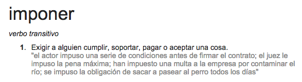 Imponen quienes no tienen autoridad moral pero sí una formal. Quienes tienen el poder y las palancas de control de su lado, con las que compensando distintas carencias de conocimiento, experiencia, empatía, etc. obligan a otros a seguir sus instrucciones y a cumplir con sus exigencias aún si están equivocadas o no; impone quien no busca el beneficio de todos sino de unos cuantos. Impone quien sólo conoce una manera de hacer las cosas y tiene pánico a experimentar y aprender.
