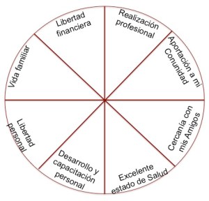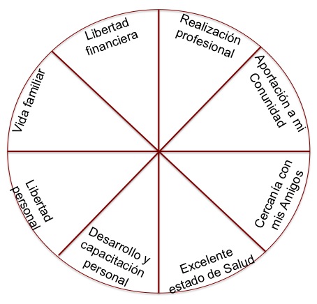 Una herramienta que, con frecuencia, utilizo con mis Coachees (clientes de coaching), para hacer esto, se llama Rueda de Vida. Consiste en dividir un círculo en 8 partes en las que asignamos un valor a cada octava parte. Y estos valores los determinamos a través de definir primero su misión personal, es decir qué es lo que quieren hacer de y con su vida. Cómo es que desean ser recordados en el futuro y cómo quieren vivir su vida.